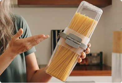 Too small? Too big? Doesn’t matter. Lockit’s one-lid-fits-all design adapts to whatever you need — snacks, pasta, leftovers, even that awkward half-bag of chips. One system that just… fits.